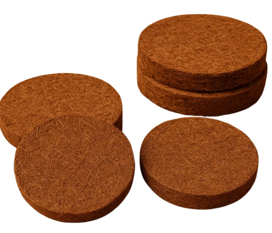 Coir Fiber Discs are natural, biodegradable mats made from coconut coir, designed to suppress weed growth, retain soil moisture, and protect plant roots. Ideal for nurseries, landscaping, and potted plants, they offer an eco-friendly solution for healthy plant growth and soil protection.